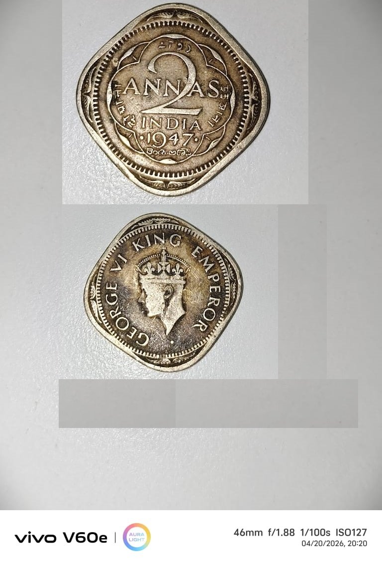 2 ANNAS 1947 WITH GEORGE 6 KING EMPEROR