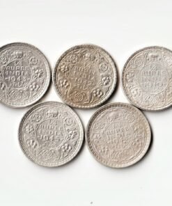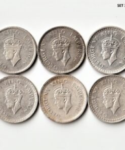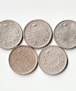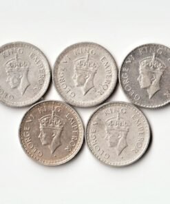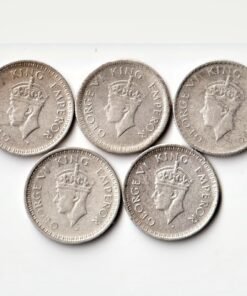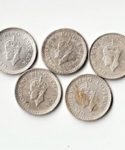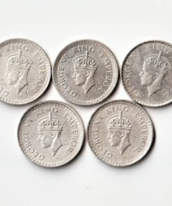 Discover a piece of history with our meticulously curated “5 Coins Set of Half Rupee of King George VI 1940-1945 Date Collection.” This exquisite collection encapsulates the numismatic legacy of King George VI during the pivotal years of 1940 to 1945. Each coin in this set is a tangible link to a bygone era, a testament to the craftsmanship and artistry of the past.