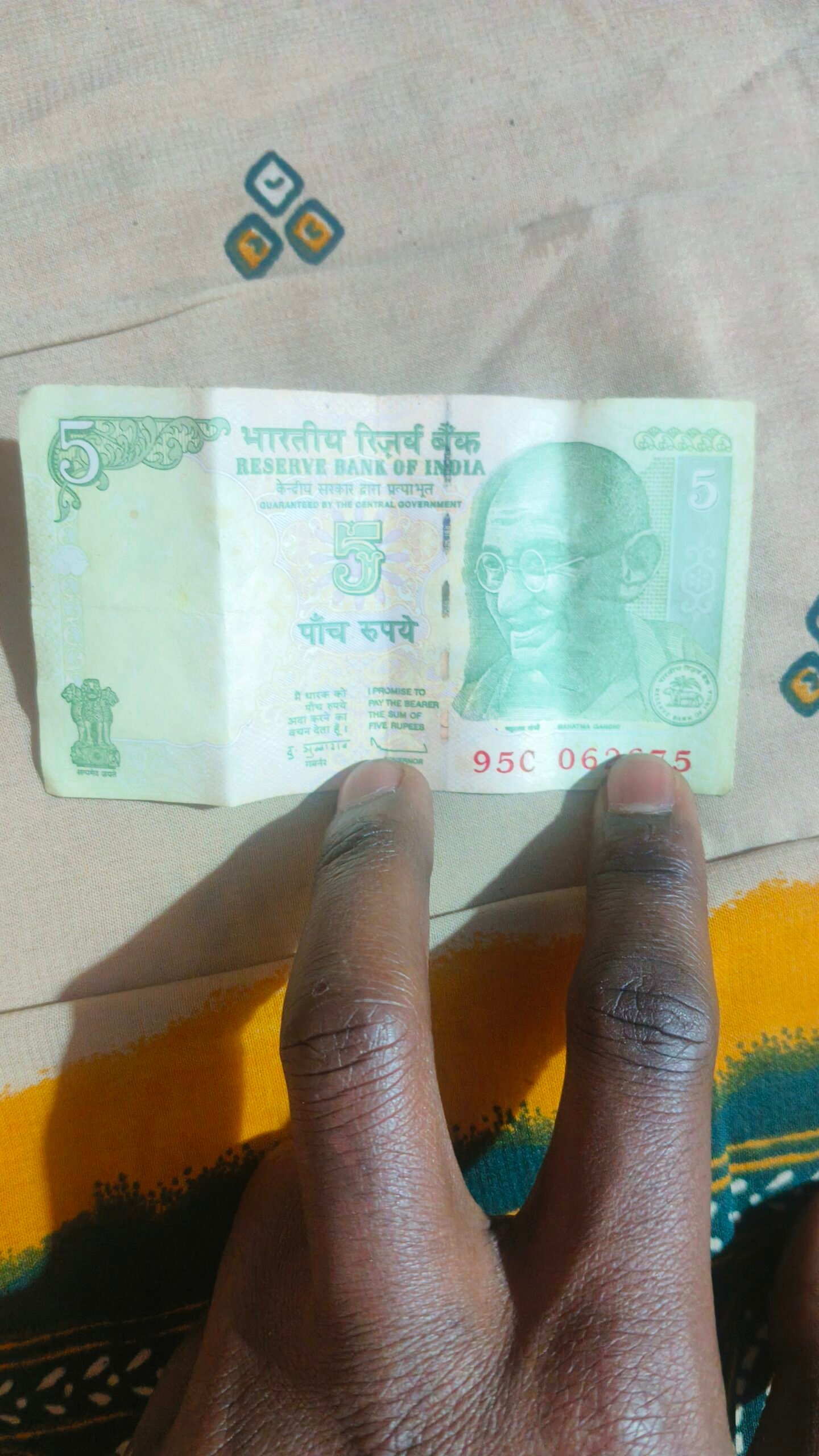 5 rupee Indian old note tactor