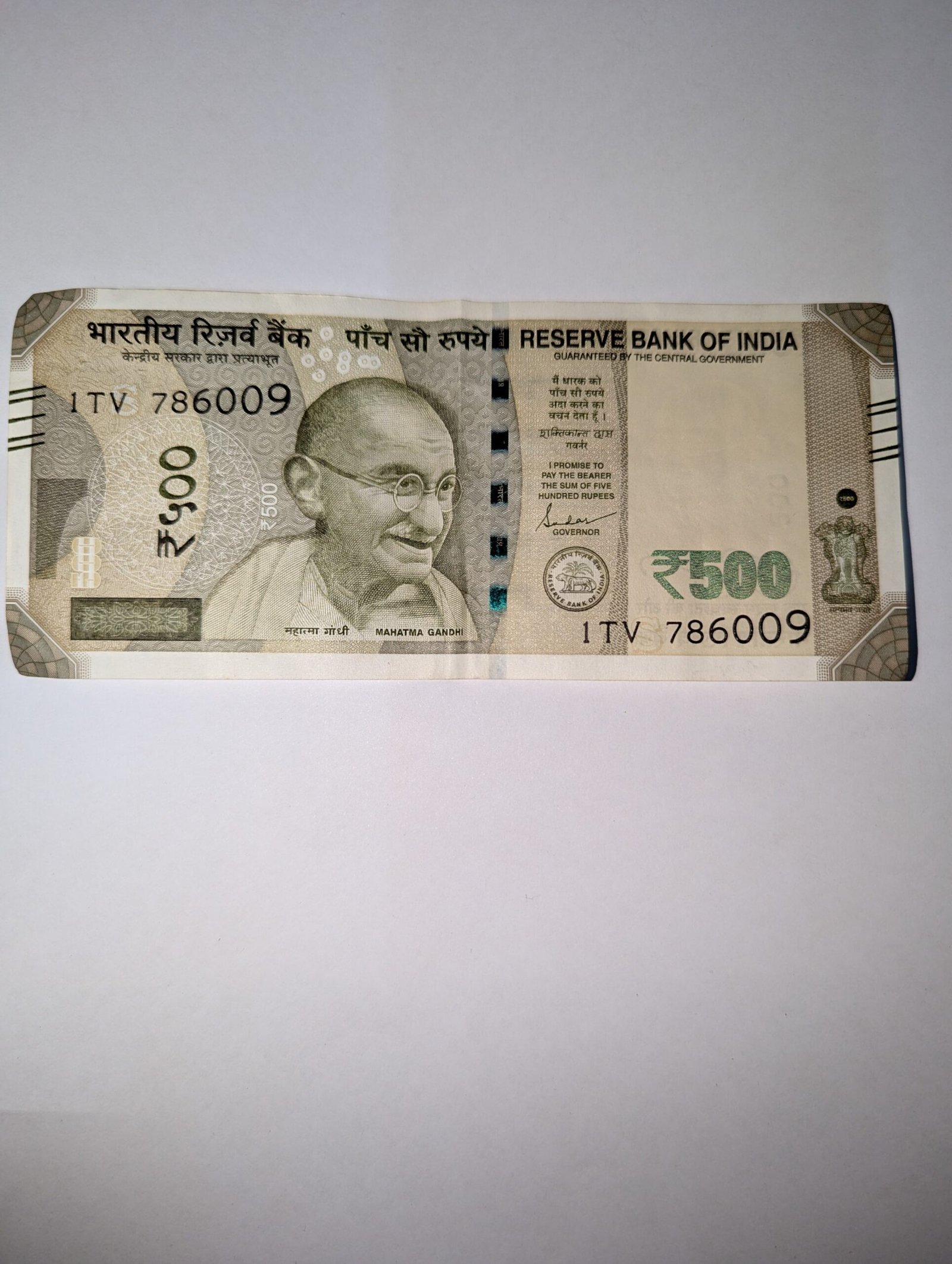 Considered as Holy number when the serial number begins with 786. Rupees 500/- note with a serial number 786009.