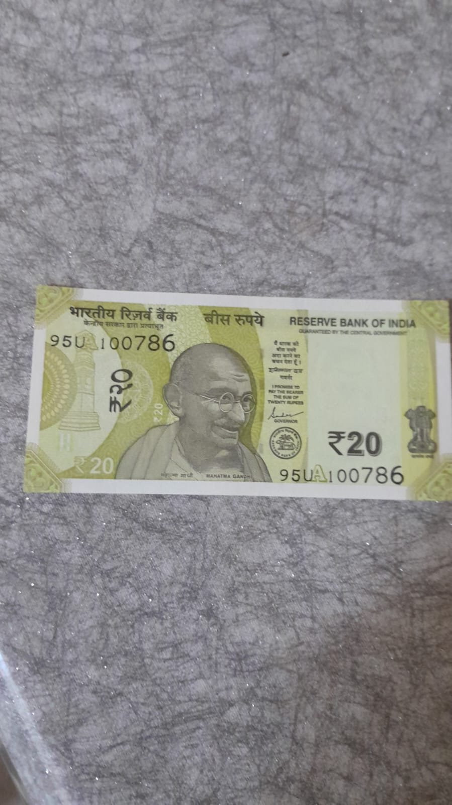 Brand new Rs 20 note with serial number ending with 786