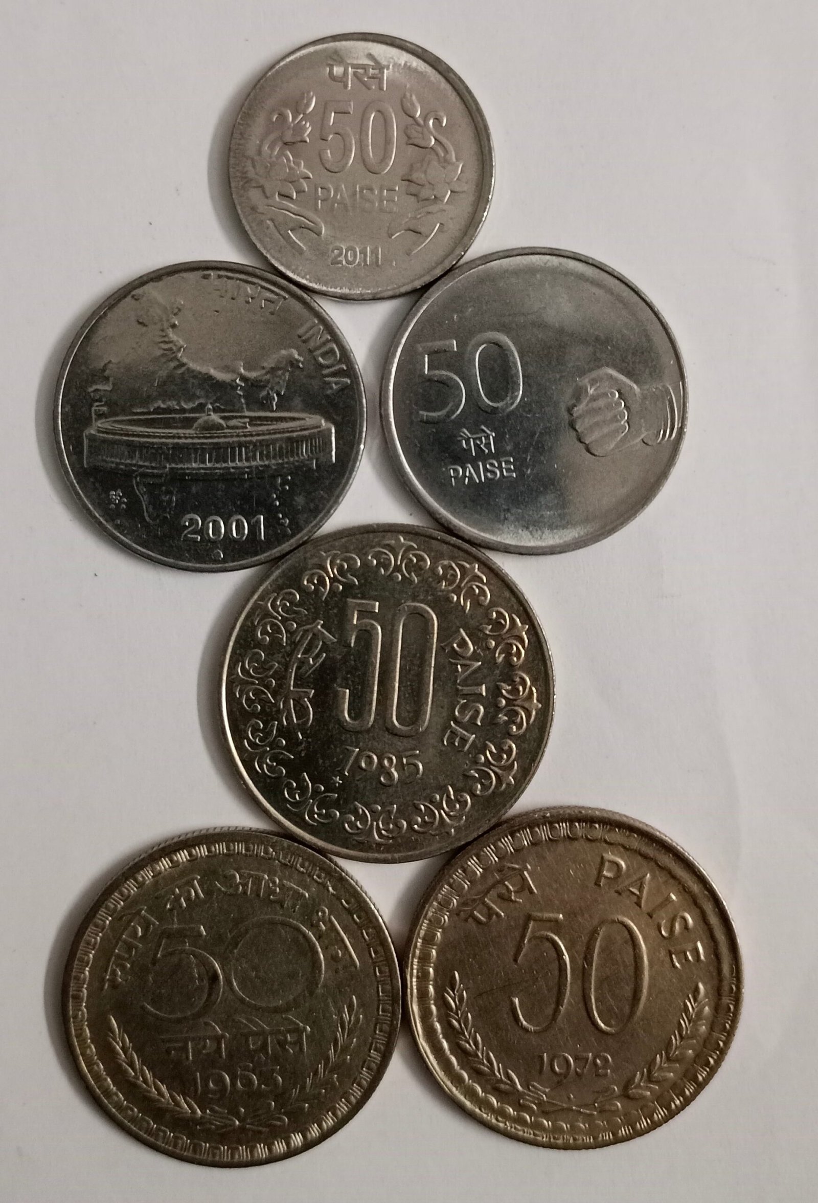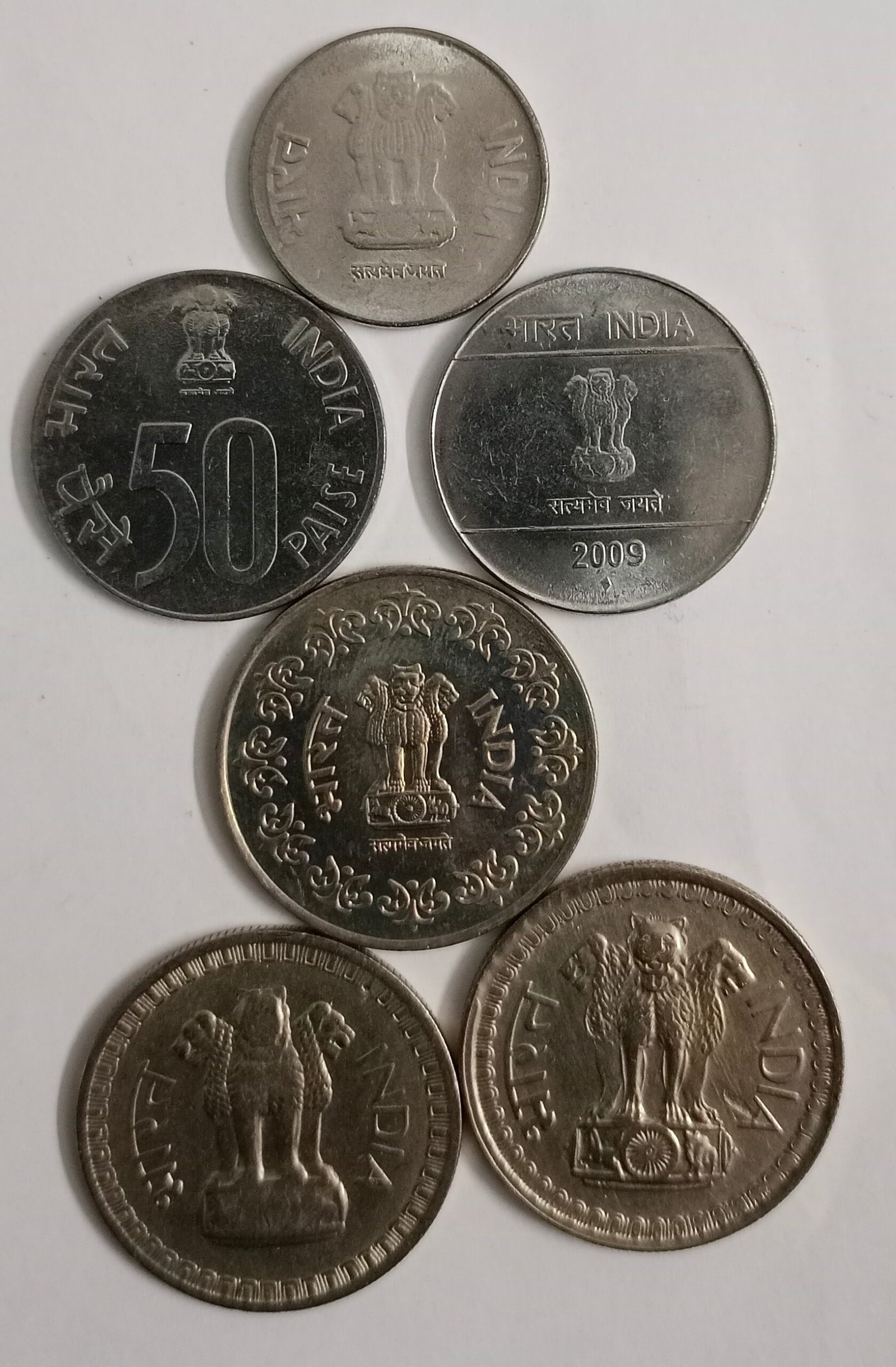 Value & Composition : 50 paise 3 steel coins and 3 copper nickel coins