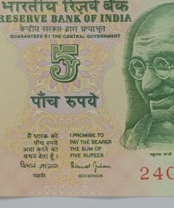 Rs.5 Indian currency note ending with number 786 and backside Tractor Photo